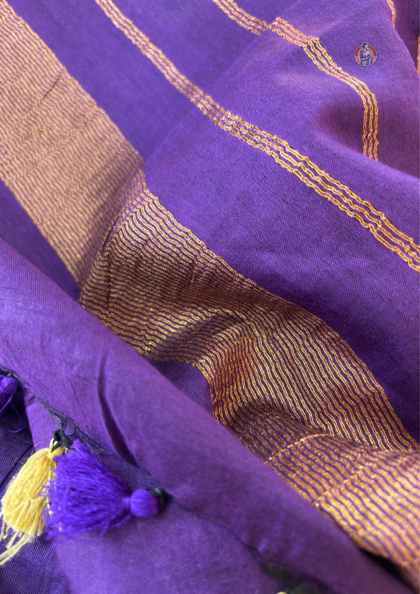 Saree Colour: Deep purple/violet tone with contrast woven border