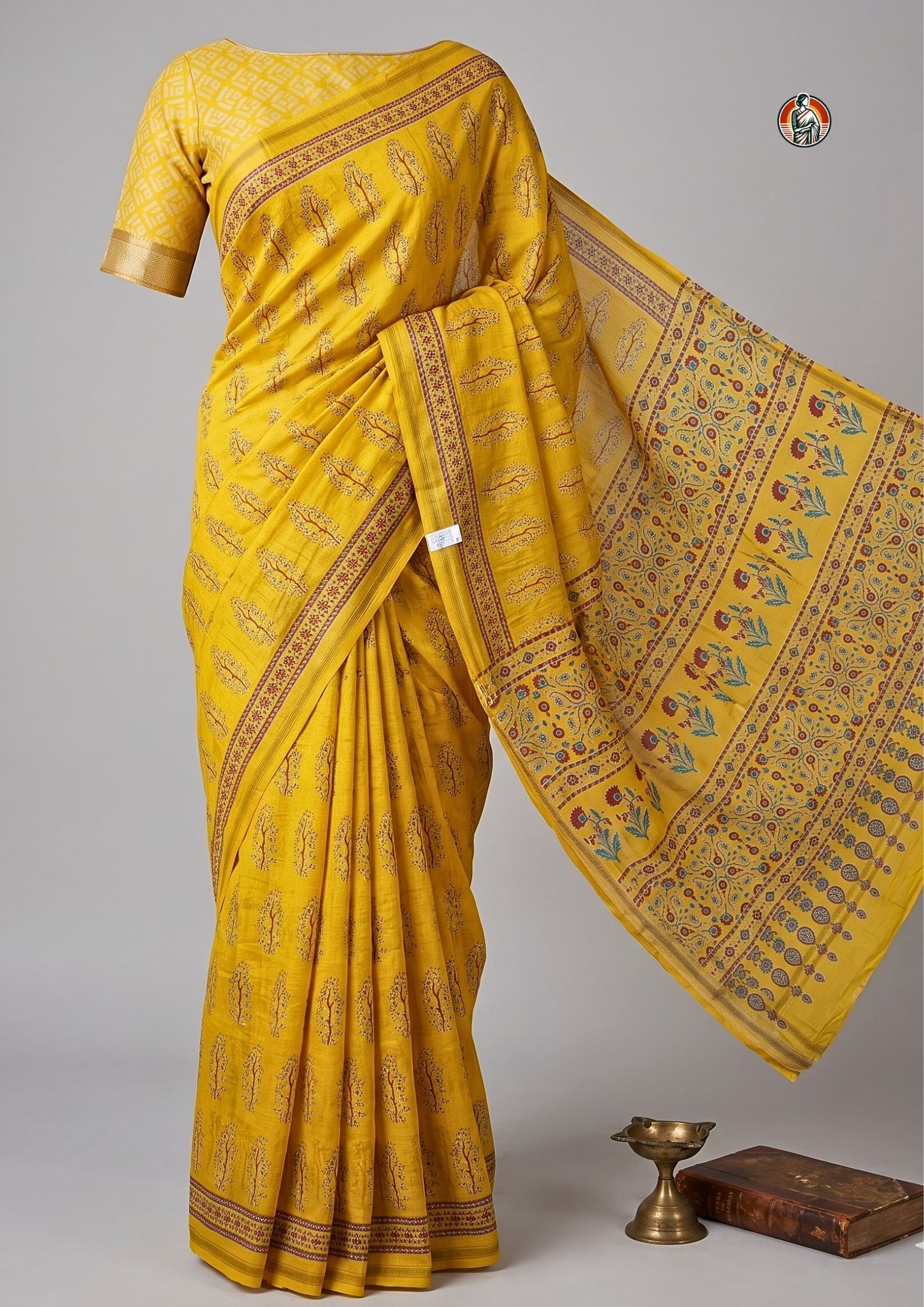 - Border: Gold zari border